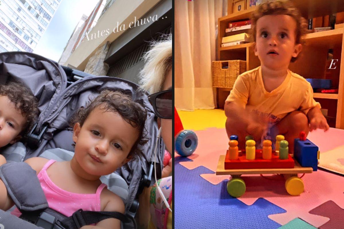 Além disso, ela mostrou nos Stories detalhes de um passeio em família. Na foto Kim e Tiê aparecem sentadas em um carrinho de bebe duplo, fazendo poses para a câmera. ‘’Antes da chuva…’’, escreveu a mãe na legenda do post.Ela também compartilhou registro das filhas brincando em casa.