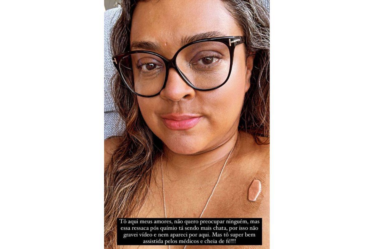 A filha de Gilberto Gil escreveu nos stories do Instagram: “Estou aqui, meus amores, não quero preocupar ninguém, mas essa ressaca pós químio está sendo mais chata. Por isso não gravei vídeo e nem apareci por aqui. Mas estou super bem assistida pelos médicos e cheia de fé!”.