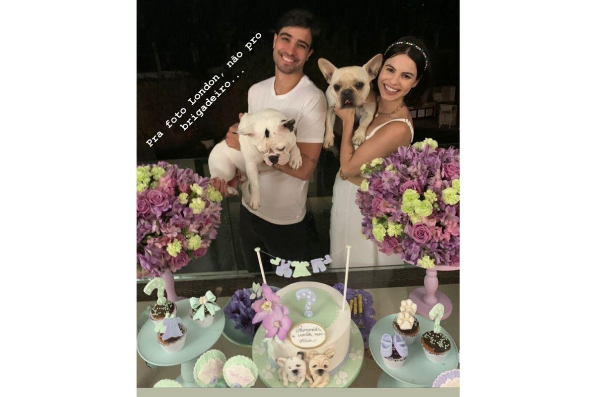 Com uma ideia super criativa, a atriz colocou bandanas nos cachorros de estimação, London e Motininho, com a cor que representaria o sexo do bebê. Na legenda da publicação, ela se declarou: “O vídeo mais lindo passando pela sua timeline!!!! Sempre imaginei nossos meninos ‘contando’ pra gente se iriam ganhar uma irmãzinha ou irmãozinho… e assim foi!!!! Que sonho, que emoção! Não poderia ter sido mais perfeito! Nossa cara, nossa familinha crescendo!!! Assistam o vídeo e descubram quem vai dominar esse instagram junto com Londinho e Montininho!!!”.