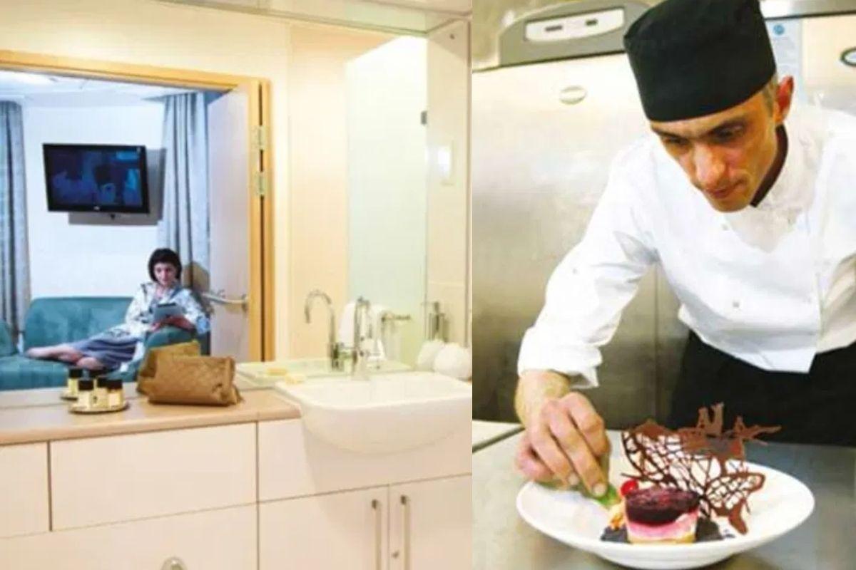 A ala também oferece TV via satélite com os principais canais internacionais, bem como rádio, WiFi e jornais. Eles têm menus extensos e podem atender a qualquer necessidade dietética, e também há uma carta de vinhos – com champanhe – para acompanhar. Se ainda estiver com fome, há também um serviço de chá da tarde.