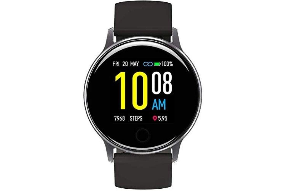 O design da tela é feito em alumínio e é resistente a água em até 50m. Monitora a frequência cardíaca 24hrs por dia, possui 12 modos de esporte e muitas outras funcionalidades, como lembretes e controle de músicas.