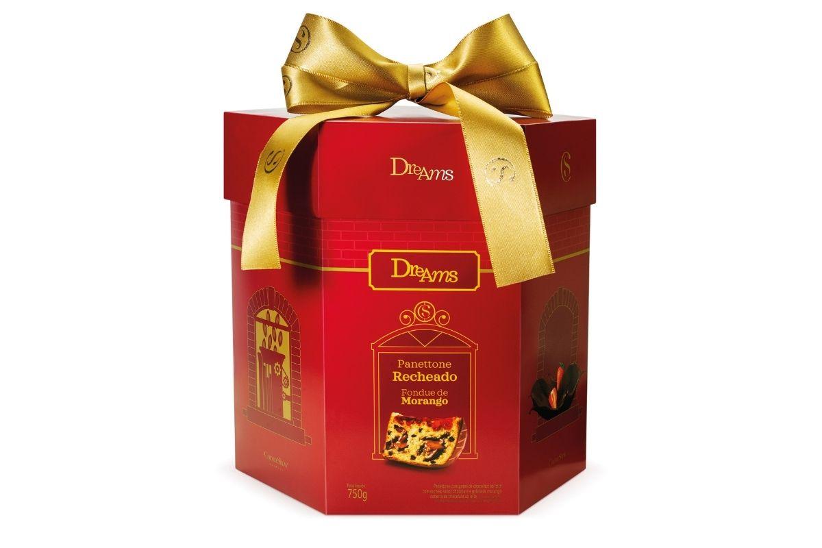 Se você faz parte do time que todo ano quer provar novidades, olha essa dica: a Cacau Show lançou um Panettone de fondue de morango. Ele tem massa com gotas e chocolate, cobertura de chocolate ao leite e recheio de chocolate ao leite com geleia de morango. O preço sugerido é de R$65,90 e pode ser encontrado em cacaushow.com.br.
