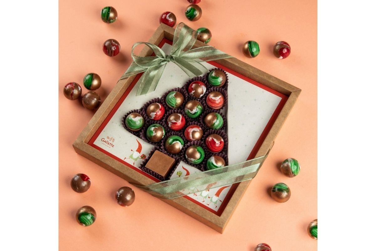 Para adoçar a vida, uma árvore de Natal com 16 bombons recheados também é uma ótima opção para presentear àquelas pessoas que amamos! O valor é de R$115,00 e pode ser encontrado AQUI.