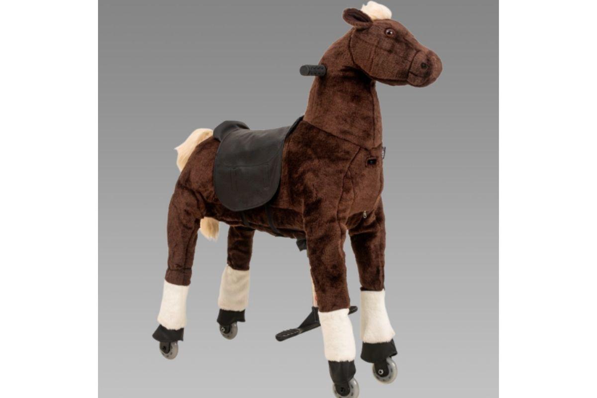 O brinquedo é ideal para crianças de 6 a 12 anos, podendo locomover sem uso de motores, apenas através de rodinhas. Ele também é revestido em veludo de alta qualidade marrom ou caramelo, possui sela de couro e é dobrável. Encontrado no valor de R$2.159,10, clicando AQUI.