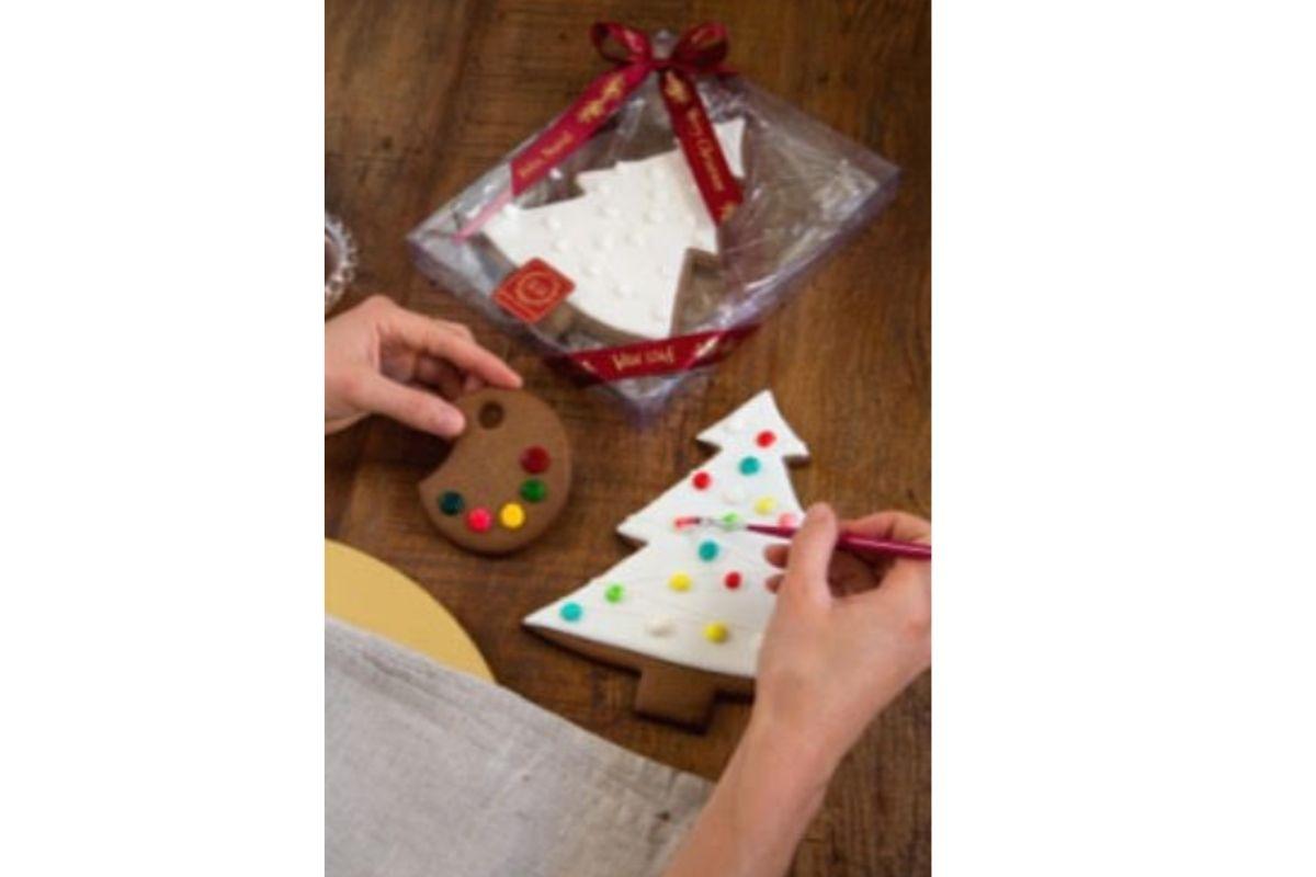 Kit de biscoitos gingerbread, com uma cartela de cores de aquarela comestível, pincel e um biscoito grande em branco para colorir e se deliciar, no valor de R$85,00. Clique AQUI para conferir.