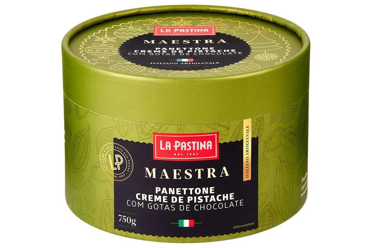 Para quem gosta de inovar no sabor, a opção da La Pastina, marca inspirada nos toques italianos, traz a versão do bolo natalino de creme de pistache com gotas de chocolate meio amargo. Produzido de forma 100% artesanal, promete fazer com que você tenha uma experiência gastronômica única! O panetone com criação exclusiva de 750 g pode ser encontrado na loja física da La Pastina, a qual se encontra no bairro paulistano da Mooca, ou através do site, com seu preço variando de R$ 119,00 até R$ 189,00.