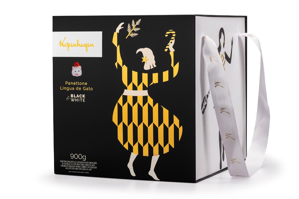 Os chocólatras piram com tanto recheio! Na nova versão ‘Black & White’, o panetone ‘Língua de Gato’, queridinho dos brasileiros, faz uma junção única no recheio com o chocolate exclusivo da marca, chocolate ao leite e chocolate branco, além de sua cobertura indispensável que também traz pedaços do chocolate da Kopenhagen com o clássico ao leite. Em lojas físicas ou no site, você pode encontrá-lo pelo preço de R$ 129,90 com 900 g.