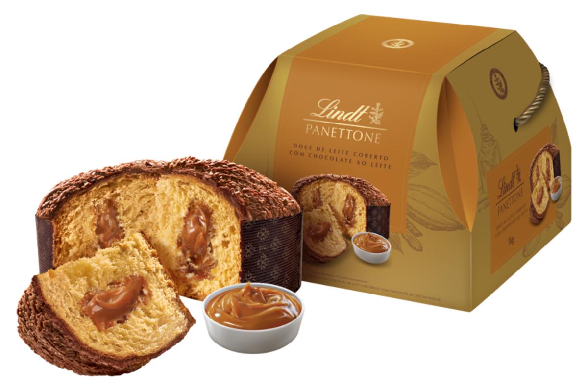 Panetone de doce de leite coberto com chocolate ao leite da Lindt (Foto: Divulgação)
