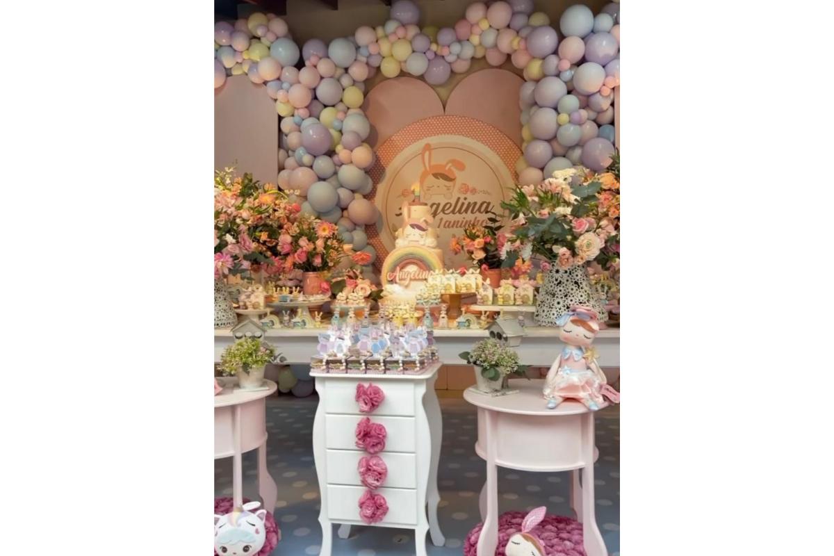 Natália também contou como foi a reação do marido ao descobrir qual seria o tema: “Quanto ao tema escolhido, Metoo, particularmente eu e o Zé amamos a personagem, bonequinha delicada e angelical igual nossa Angelina. Fizemos algo bem íntimo mesmo, apenas para familiares…mas quis caprichar bastante na decoração!! Estava tudo lindo, esse dia ficará definitivamente em nossos corações pra sempre”.