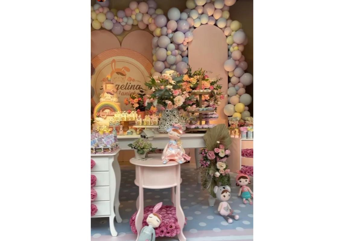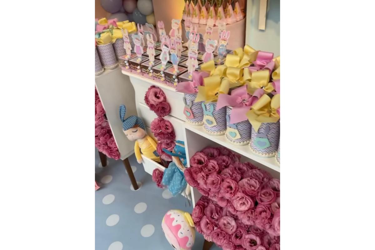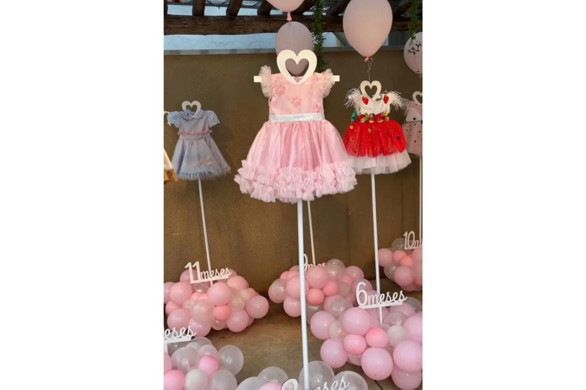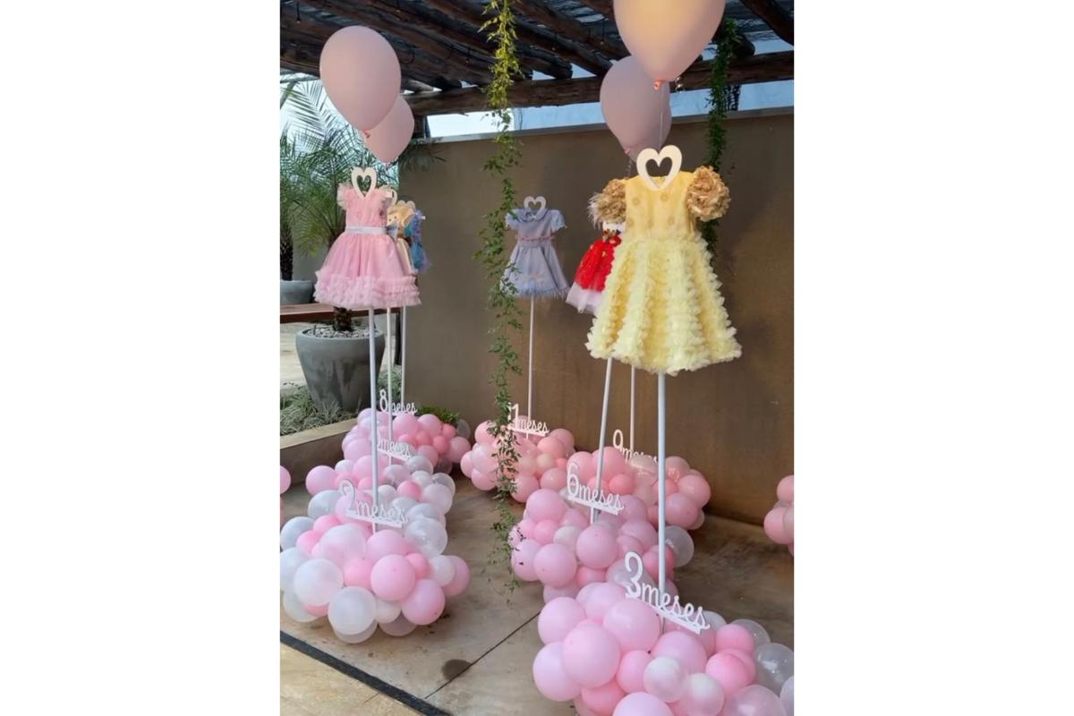 O tema da festa foi ‘Bonequinha Metoo’ e Natália fez questão de caprichar na decoração feita por Daniela Raduan. A temática estava repleta de significados e usaram as roupas de todos os mesversários da filha como parte da decoração. Eles ficaram expostos com os meses ao lado.