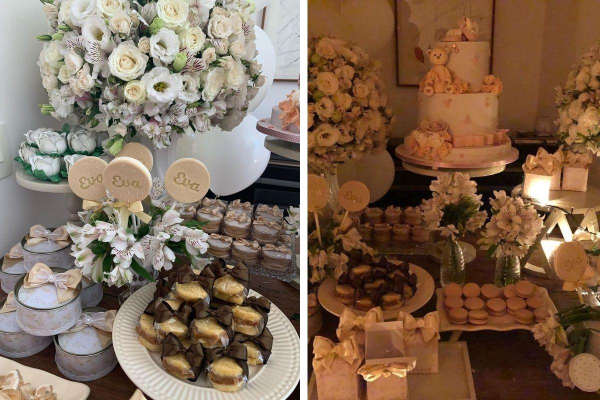 “Montamos essa mesa pra não deixar de comemorar a chegada da nossa Eva. No nosso coração estávamos todos os amigos e familiares que a gente ama. #chadaeva Ficamos muito emocionados com todos os detalhes dessa decoração”, disse.
