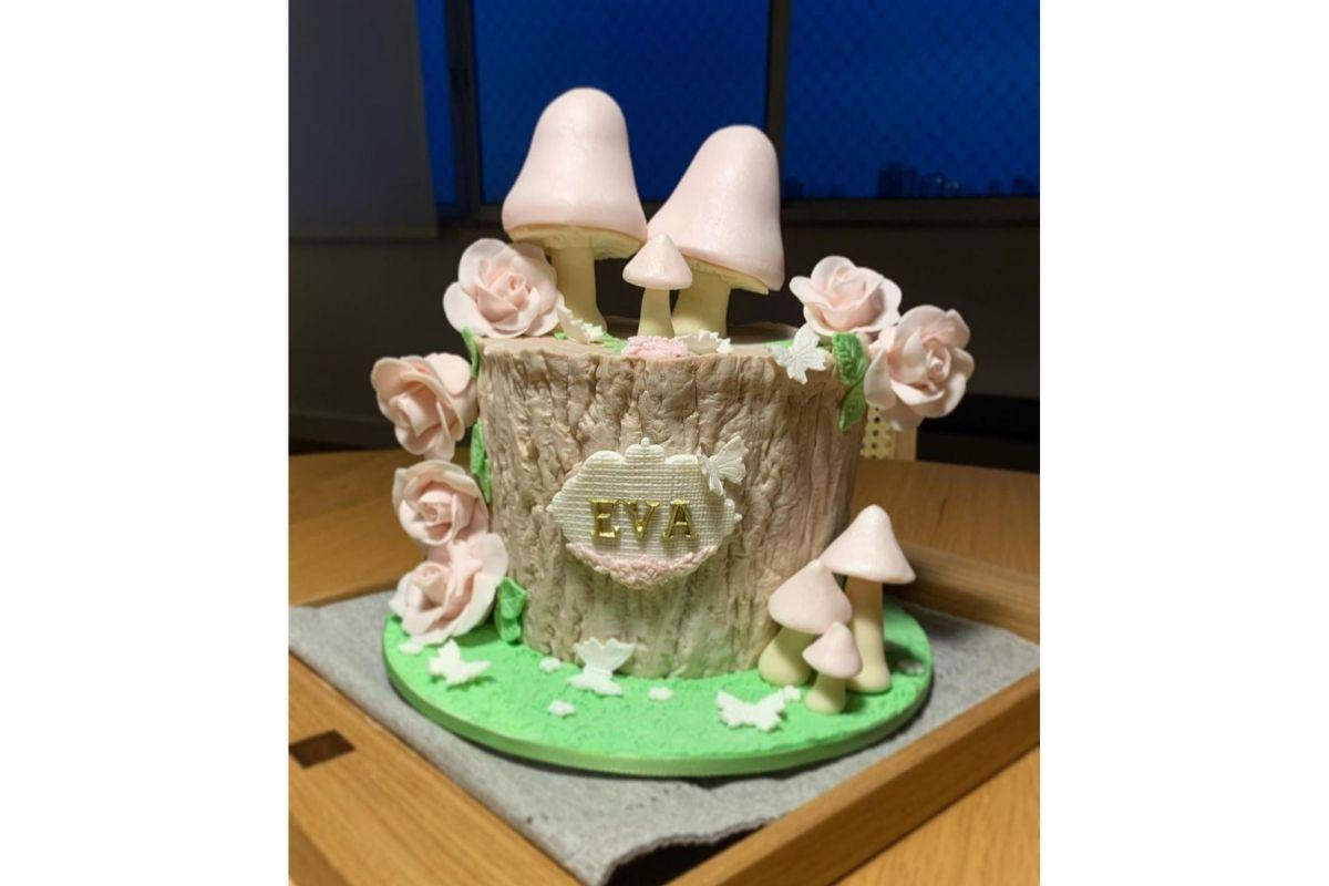 A decoração do bolo teve flores e cogumelos, representando uma floresta (Foto: reprodução / Instagram @nathaliadill)