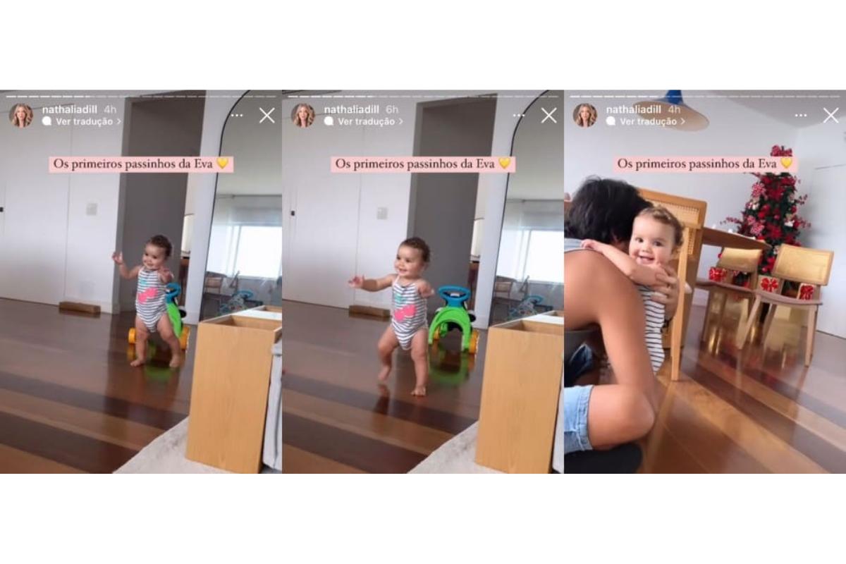 Foi através do Instagram que Nathalia Dill mostrou, cheia de orgulho, a conquista especial da filha. Em uma sequência de vídeos, a bebê aparece se apoiando em um brinquedo, que pertenceu ao filho do ator Marcos Veras, para caminhar até os braços do pai. “É um marco, são os primeiros passos, a primeira andada”, afirmou a artista que, junto com o noivo, parabenizou Eva.