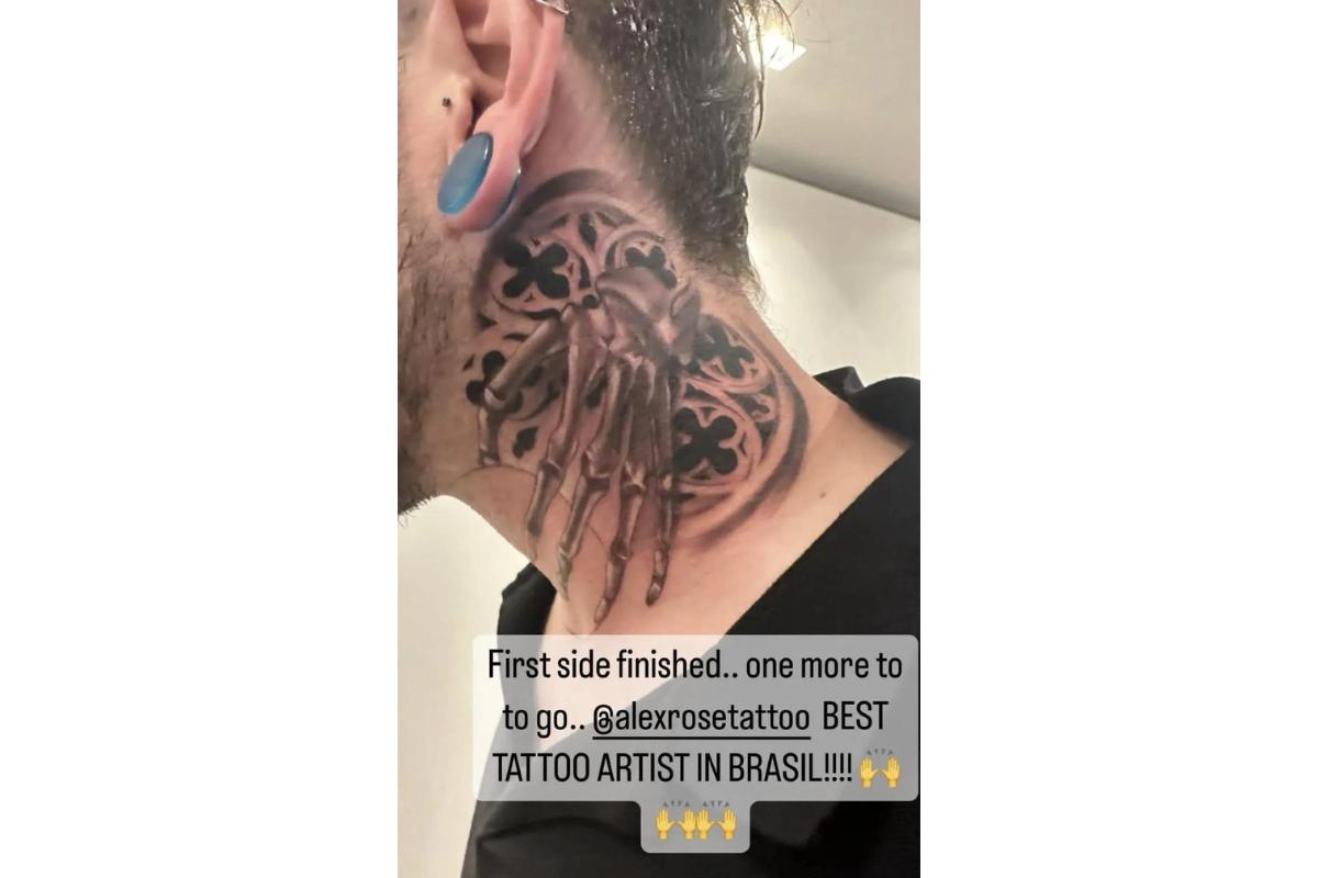 Na publicação, Navarone escreveu que ‘o primeiro lado está concluído’, mas que ainda falta tatuar a outra parte. Ele também elogiou o tatuador responsável, afirmando que é o melhor do Brasil. A tatuagem é mais uma adição à coleção do músico, que já tem diversas outras pelo corpo.