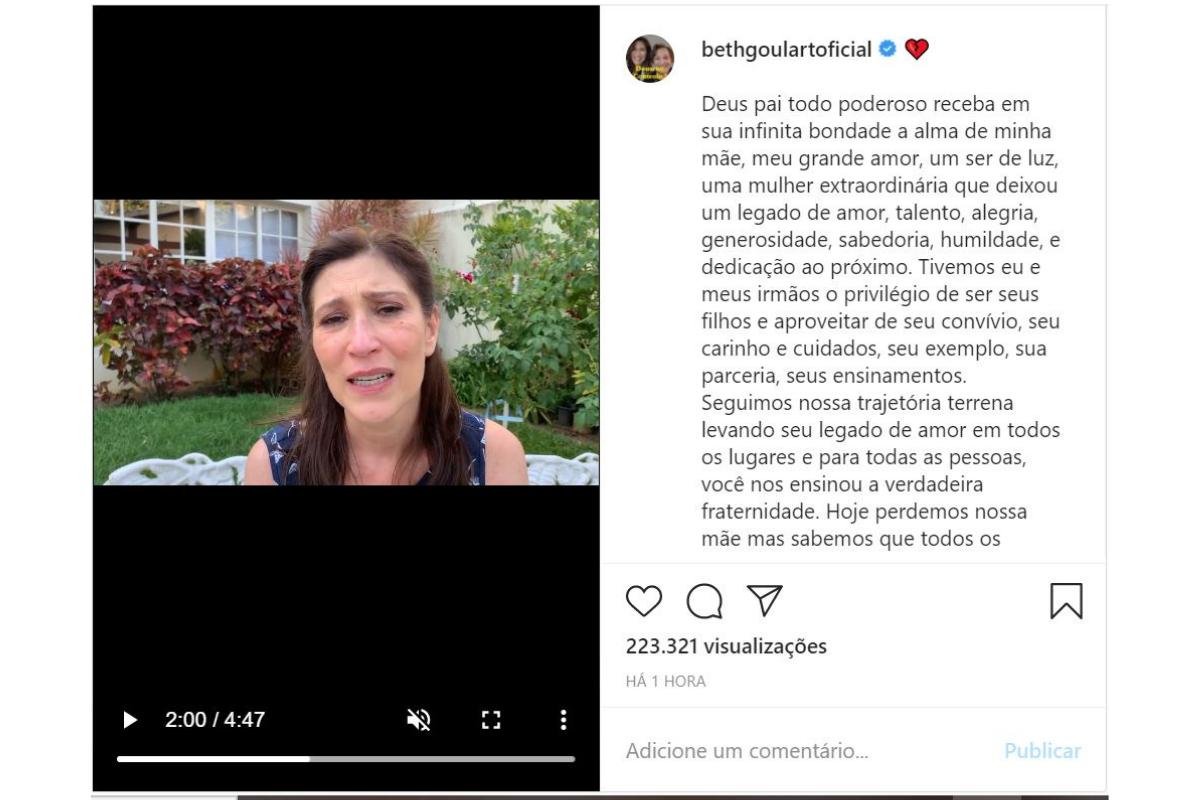 Nicette Bruno faleceu aos 87 anos por Covid-19 , na manhã de domingo, 20 de dezembro. A filha dela Beth Goulart, fez um vídeo emocionante para falar sobre a morte da mãe e a passagem dela.