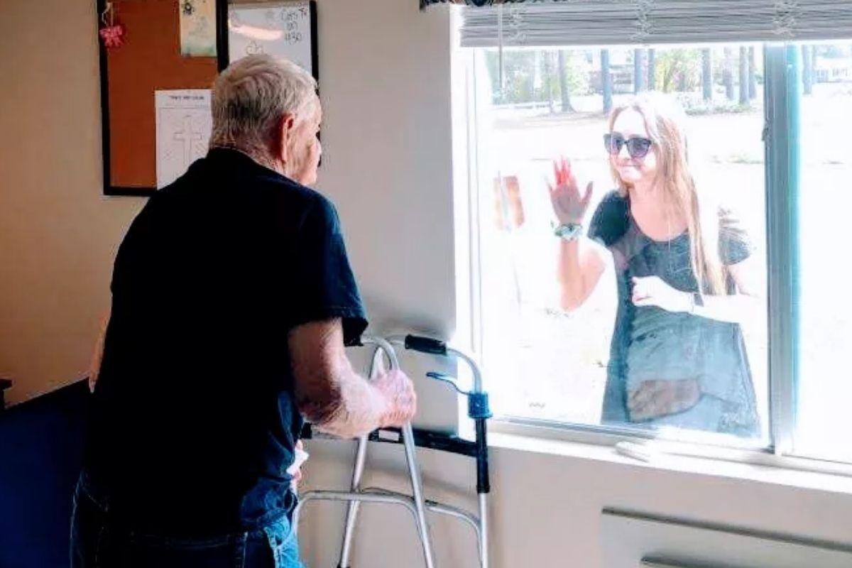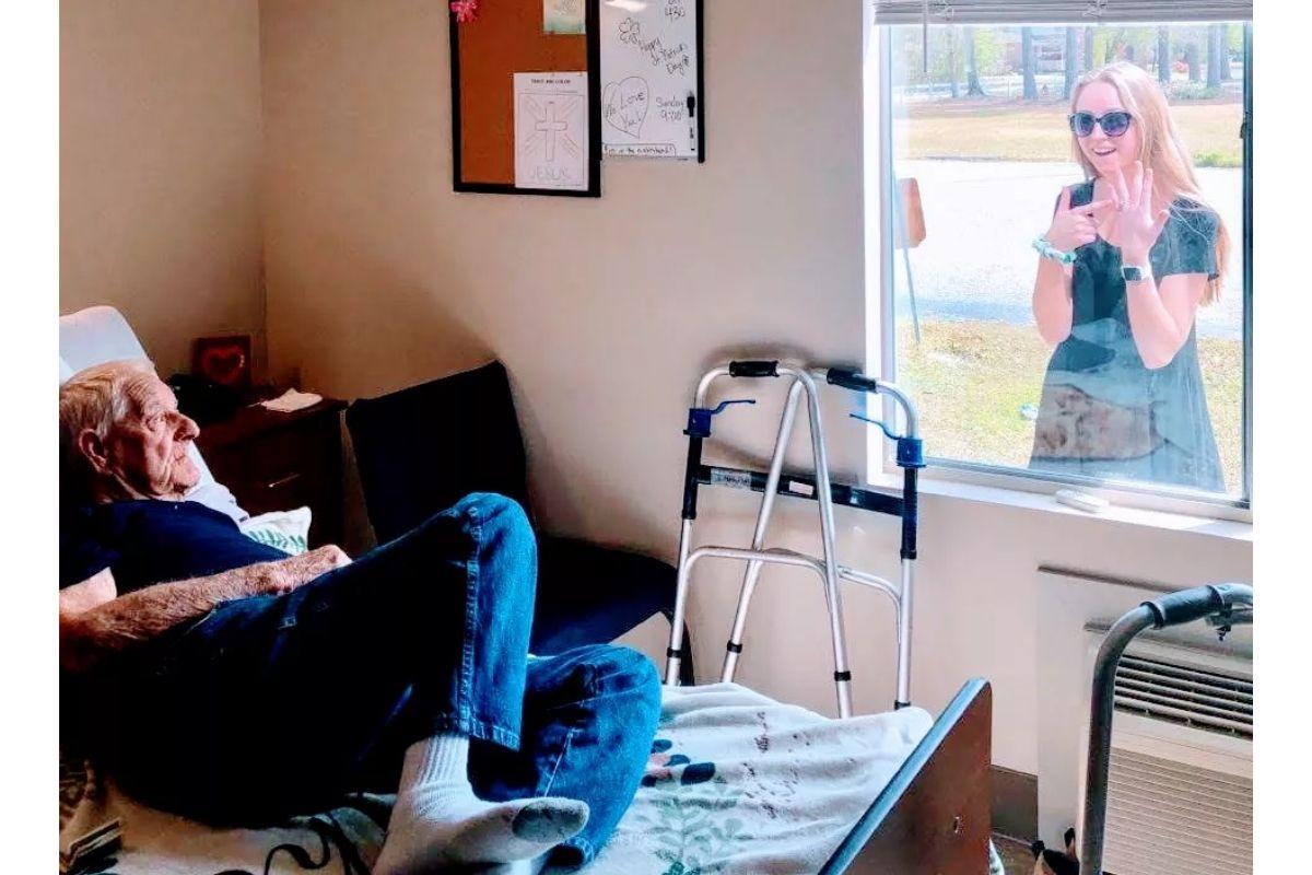 Nos Estados Unidos, em uma casa de repouso que fica em Lake Waccamaw, um idoso recebeu uma notícia importante pela janela. A neta, Carly Boyd, revelou que está noiva e disse que não poderia deixar de contar ao avô.