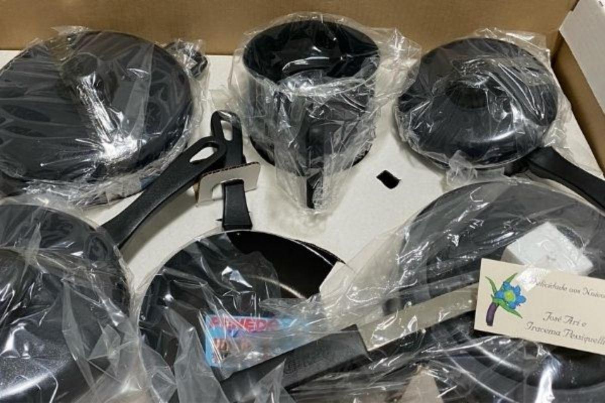Já que o avô de Natália está fechando a casa em que morava com dona Cema, ele decidiu surpreender a neta e pediu para que o pai entregasse o presente. Um jogo de panelas lindíssimo, escolhido com muito carinho.