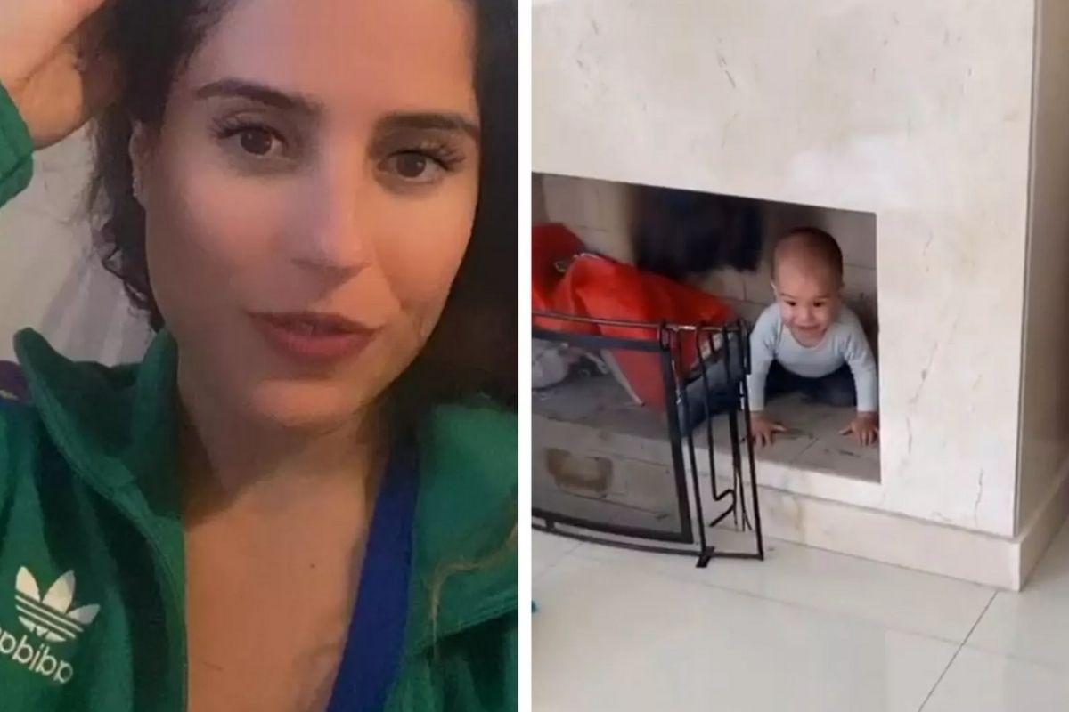 Joaquim, de 1 ano, deu um sustinho na mãe ao entrar dentro da lareira da casa e se sujar inteiro de fuligem. Camilla Camargo encontrou o filho brincando dentro do móvel e deu uma bronca, mesmo não aguentando no final e caindo na risada. O pequeno é neto de Zezé Di Camargo e Zilu e fruto do relacionamento da influencer com o diretor Leonardo Lessa.
