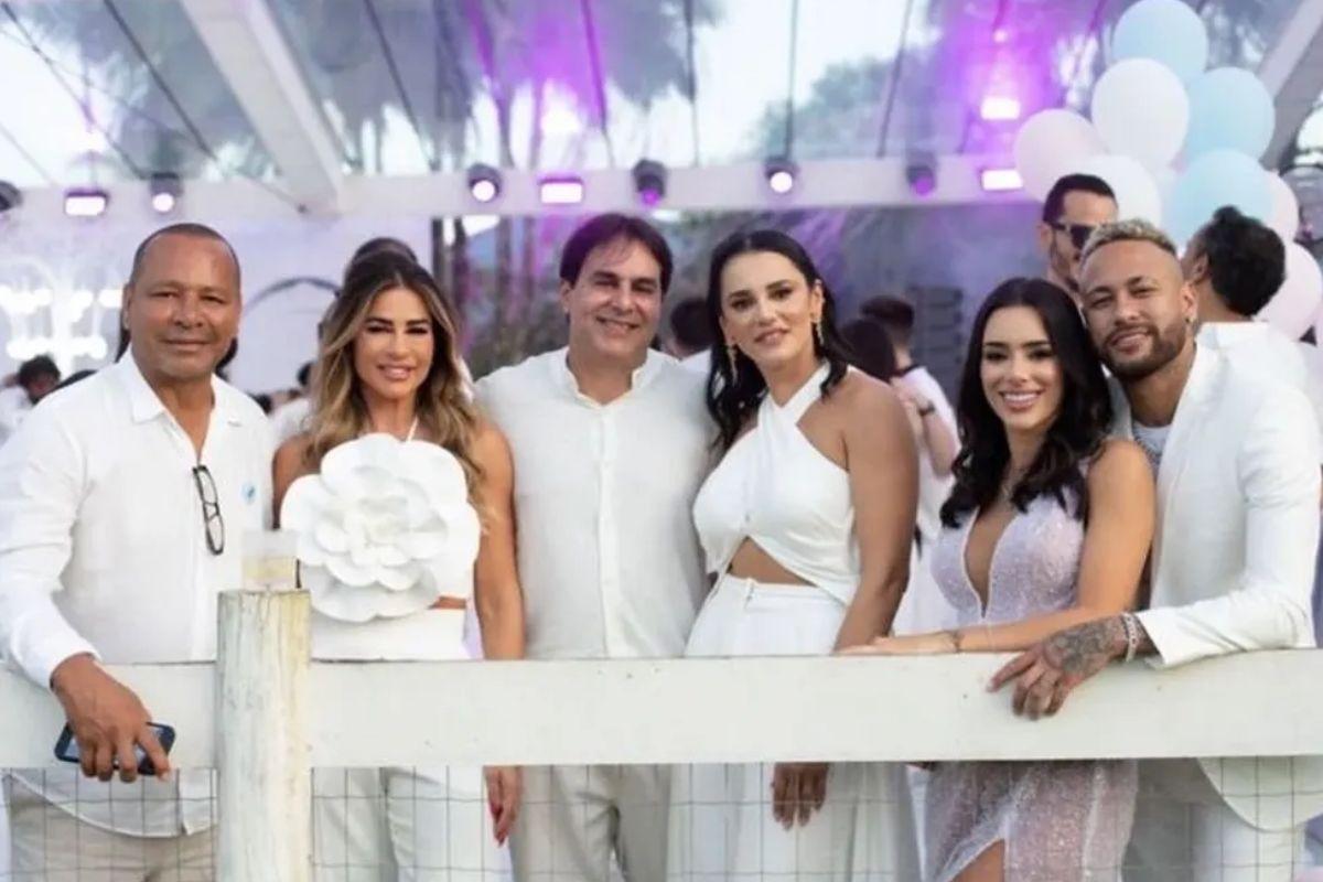Rumores dizem que a mãe de Neymar, Nadine Gonçalves, e a nora, Bruna Biancardi , não se dão bem. O que chamou atenção desta vez foi que, na foto oficial da família no chá revelação da filha de Bruna e Neymar, a mulher foi “substituída” pela nova namorada do pai do jogador de futebol.
