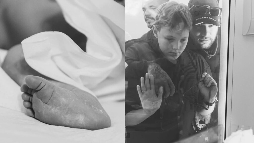 Neymar aparece com seu filho mais velho, Davi Lucca segurando a irmã no colo e aguardando o nascimento dela. Além de Helena e Davi, Neymar também é pai de Mavie, fruto do seu relacionamento com Bruna Biancardi.