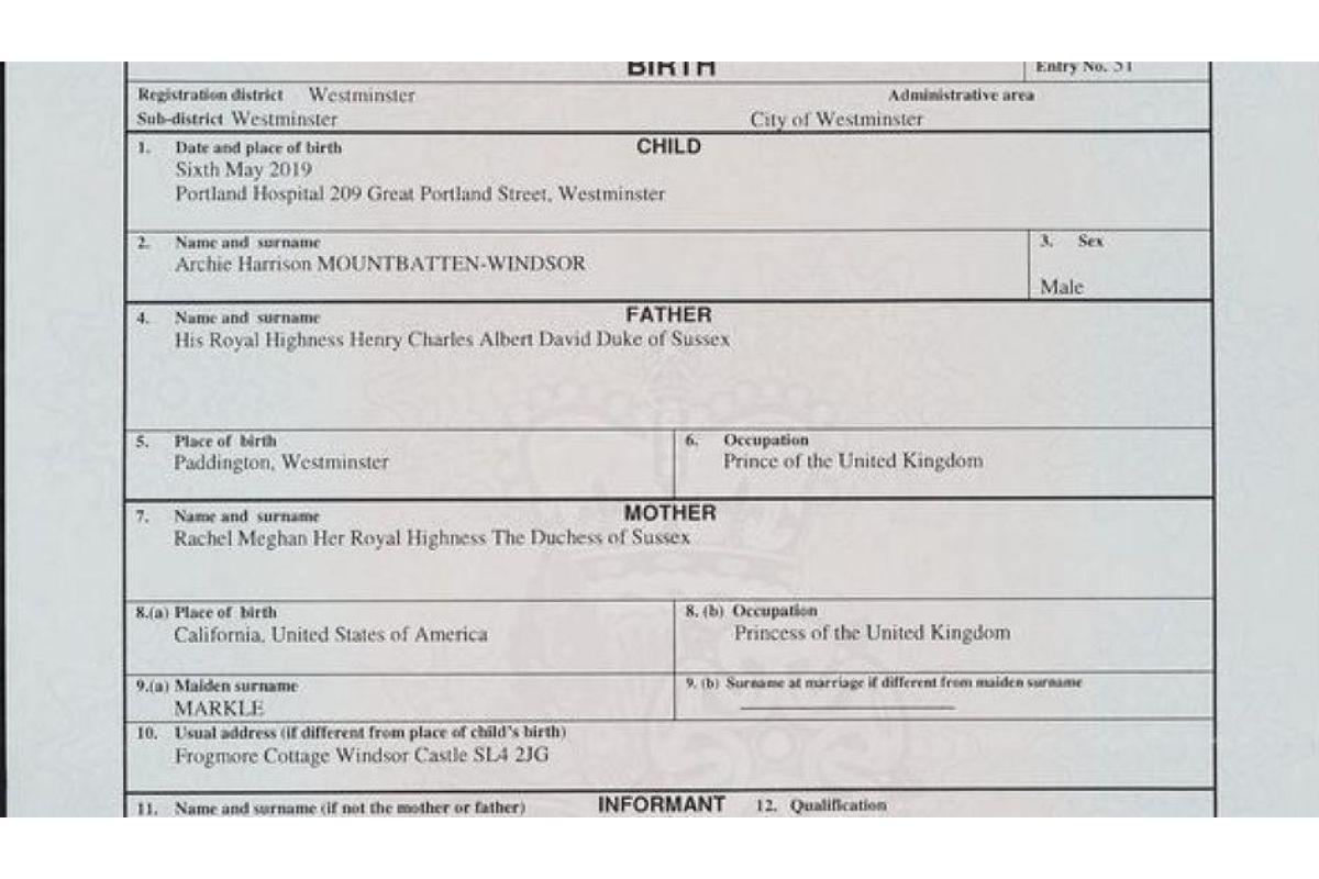Dentre as revelações, foi descoberto que o nome de Archie é composto por Harrison e que Meghan, na verdade se chama Rachel! Na descrição de trabalho, ao invés de duquesa, está definido como Princesa do Reino Unido. O local de nascimento do bebê foi identificado e registrado como Hospital Portland, em Westminster, na Inglaterra, no qual custa mais de 100 mil reais por noite de internação.