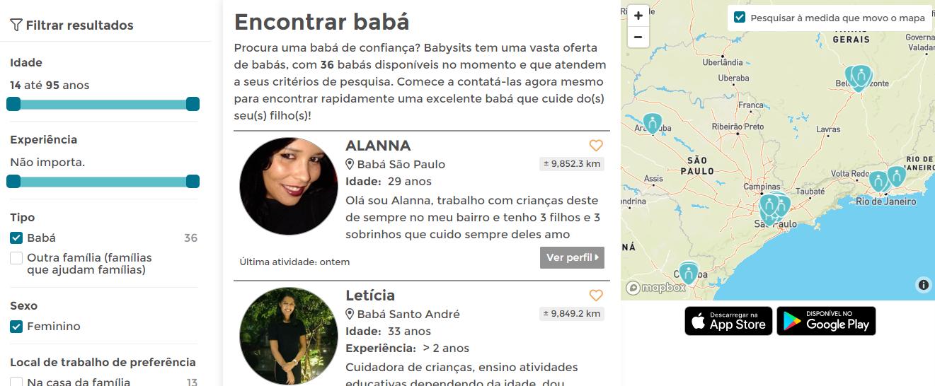 De acordo com Letícia, atualmente o site tem uma base de mais de 2500 babás cadastradas. Além disso, as babás podem fazer uploads de cursos e qualificações que comprovem a experiência delas e também colocar as redes sociais para contato.