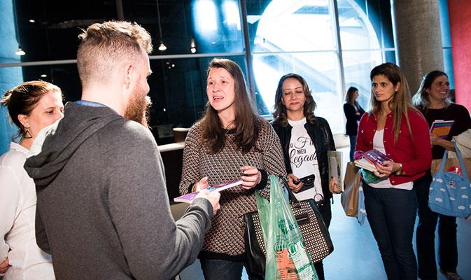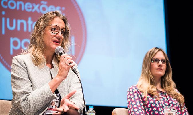 As discussões começaram com Alessandra Borelli, Daniela Schmitz, Patrícia Camargo, Bianca Arcangeli e Ana Castelo Branco em uma mesa redonda falando sobre o tema “Educação Digital: o caminho para o melhor e mais seguro proveito das novas tecnologias”. Foi demais!