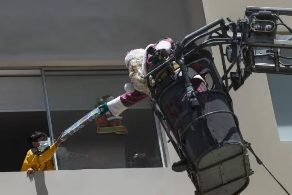 Para levar alegria às 126 crianças internadas com Covid-19 no Peru, o comediante Paul Suaréz, 44, decidiu usar a escada de bombeiros para entregar 126 presentes de Natal no hospital de emergência montado na Vila Pan-Americana que hospedou os esportistas nos Jogos Pan-americanos de Lima em 2019.