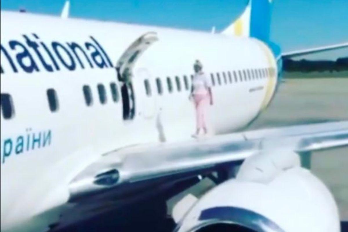Uma mulher chocou os companheiros de viagem ao sair de um avião pela asa para se refrescar. As imagens mostram ela andando pela asa após abrir a saída de emergência da aeronave porque lá dentro estava “muito quente”.  A mãe de dois filhos da Ucrânia estava voltando de um feriado na Turquia quando correu para sair do avião assim que ele pousou no aeroporto Boryspil, em Kiev.