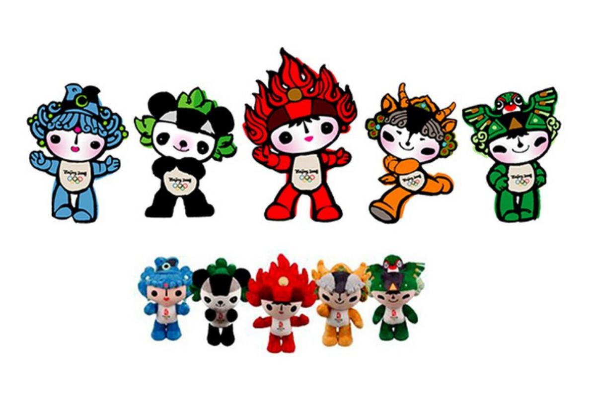 Algumas vezes as Olimpíadas são representadas por mais de um mascote, como no caso dos Jogos em Pequim em 2008. Cada um deles representa um elemento, uma cor dos anéis olímpicos, um desejo e, com exceção de Huanhuan, um animal característico da China. Beibei (azul) é um peixe, simboliza a água e tem o desejo da prosperidade; Jingjing (preto) é um panda, simboliza a floresta e tem o desejo da felicidade; Yingying (amarelo) é um antílope-tibetano, simboliza a terra e tem o  desejo da saúde; Nini (verde) é uma andorinha, simboliza o céu e tem o desejo da sorte; Huanhuan (vermelho) simboliza o fogo e o espírito olímpico e transmite a paixão pelo esporte. Agrupando os nomes dos mascotes, é formada a frase “Bem-vindo a Pequim”. E o quinteto é chamado de Fuwa (“bonecos de boa sorte”).