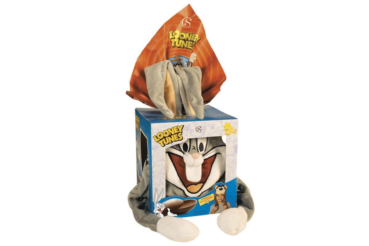 Descrição: ovo de chocolate ao leite, que acompanha uma touca exclusiva do seu personagem preferido: Pernalonga, Piu-piu, Frajola ou Taz