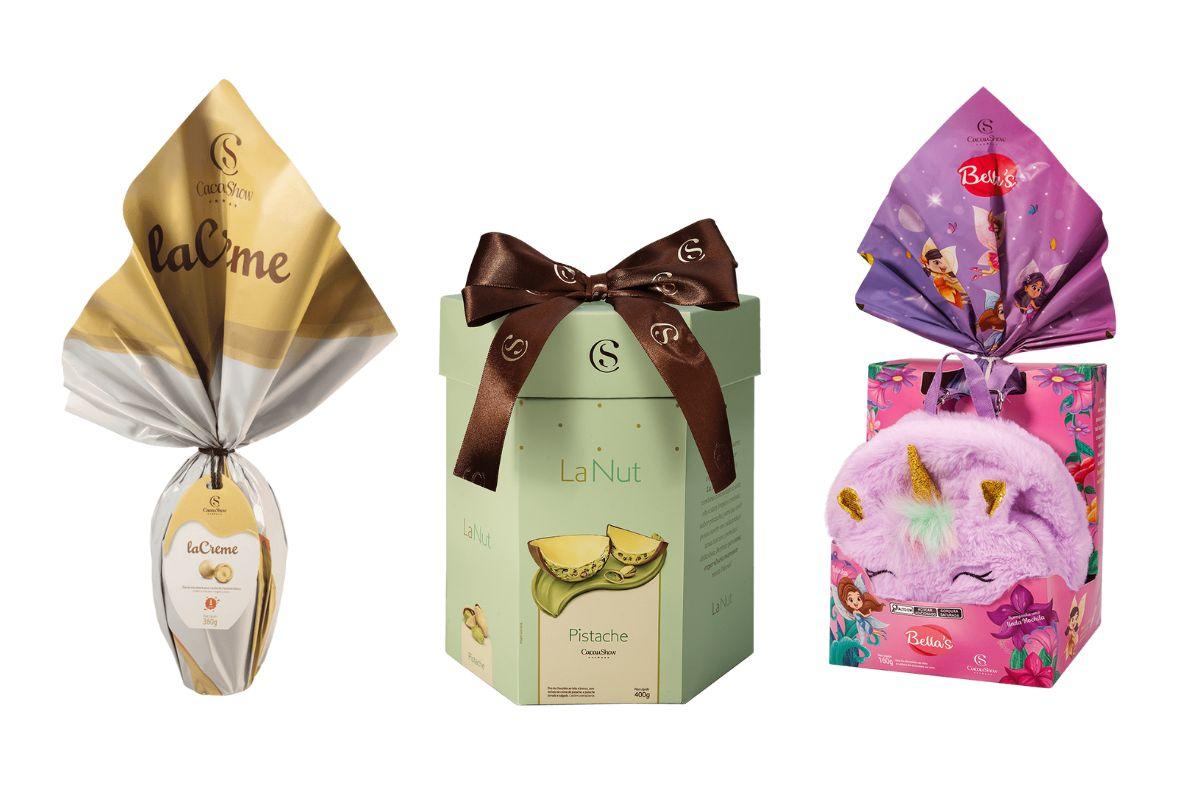 Esse ano a Cacau Show trouxe muitas novidades que até mesmo, os adultos querem brincar. Sem perder a essência da marca, a lançou o ovo Gourmet nuts (350g), partir de R$89,90, o tradicional La creme (360g ), a partir de R$69,90, o ovo Bella’s com mochila de unicórnio (160g), A partir de R$99,90, o Dreams mil folhas (400g), A partir de R$89,90 e o ovo La Nut Pistache (400g), a partir de R$99,90.