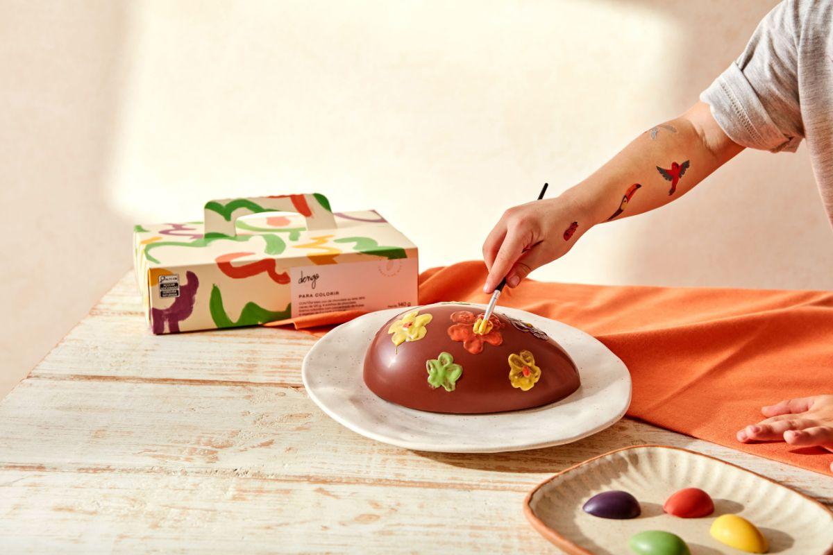 Para despertar o artista que existe no seu filho, a Dengo preparou o Dengo para Colorir (140g), por R$109,00, onde vem a casca do ovo, mini ovos coloridos e um pincel para colorir o ovo maior.