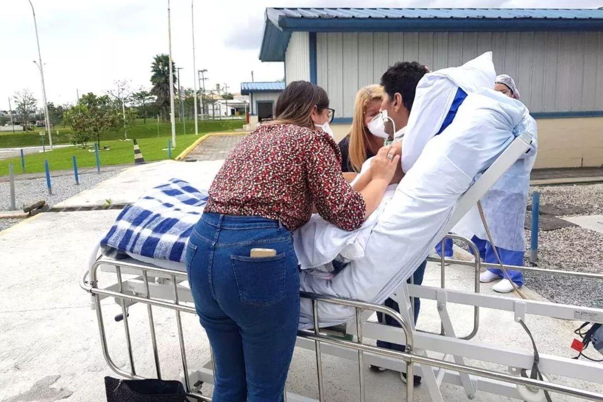 Ele ficou no Hospital Regional de Biguaçu, na Grande Florianópolis, onde passou por três intubações e uma traqueostomia. Ainda sem falar e sem previsão de alta, na sexta-feira, 17, apesar das limitações, não faltaram gestos de carinho para mostrar a emoção de poder estar próximo da mulher e de uma das filhas.