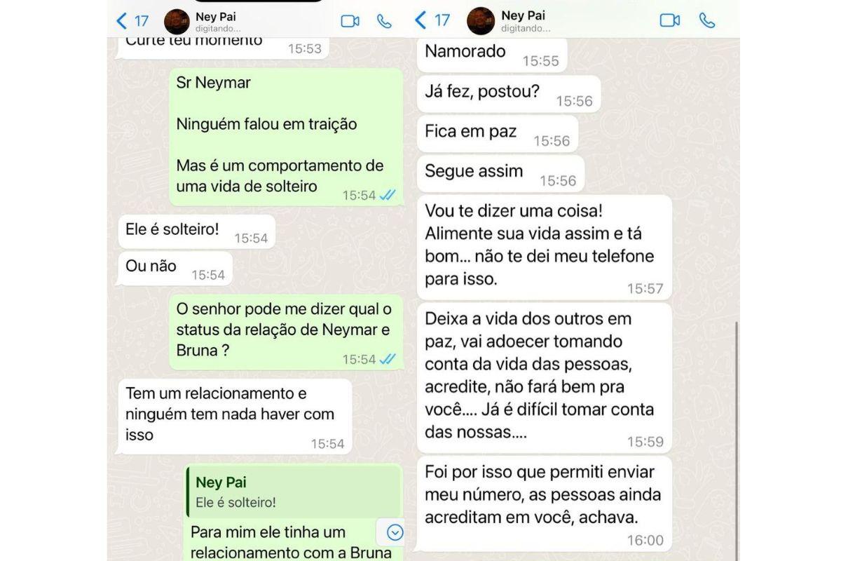 Em mensagens trocadas com o jornalista Leo Dias (e divulgadas pelo próprio), o empresário chegou a se confundir com o status do relacionamento do filho. “Ele é solteiro. Ou não. Eles são namorados (Neymar e Bruna Biancardi)”, disse ele.