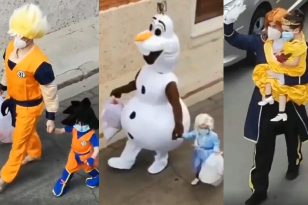 A família mora em Puertollano, na Espanha, e estão em casa há mais de um mês. O primeiro ‘passeio fantasiado’ aconteceu quando eles estavam brincando em casa, usando fantasias da Frozen. Deu o horário de levar o lixo e eles resolveram ir da forma que estavam, caracterizados.