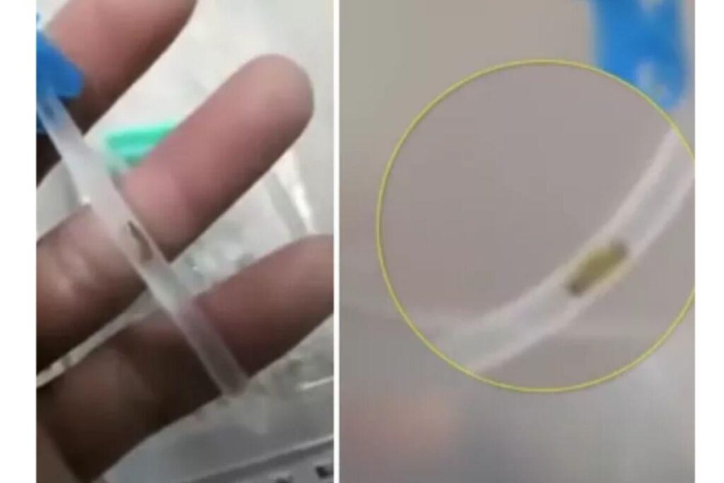 Um pai ficou chocado ao ver uma larva dentro do equipo, um dispositivo em formato de cano que transfere o líquido para a veia. Ele estava com o filho de 3 anos em um hospital de Leshan, uma cidade na província de Sichuan, na China. No vídeo é possível escutá-lo conversando com uma enfermeira: “Isto foi injetado no corpo do meu filho. Estou com muita raiva agora. Este verme está na bolsa intravenosa”.