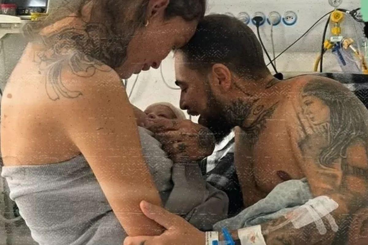 Casal no dia do nascimento de Noah, em 10 de maio de 2022 (Foto: Reprodução/UOL)