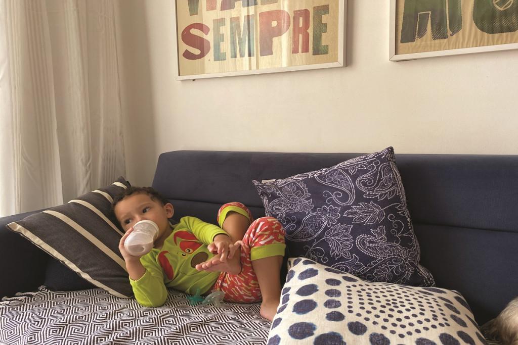 7h40 Nossa rotina aqui em casa começa bem cedo. O Noah gosta de tomar seu mamá no sofá assistindo aos seus desenhos favoritos. (Foto: Arquivo Pessoal)