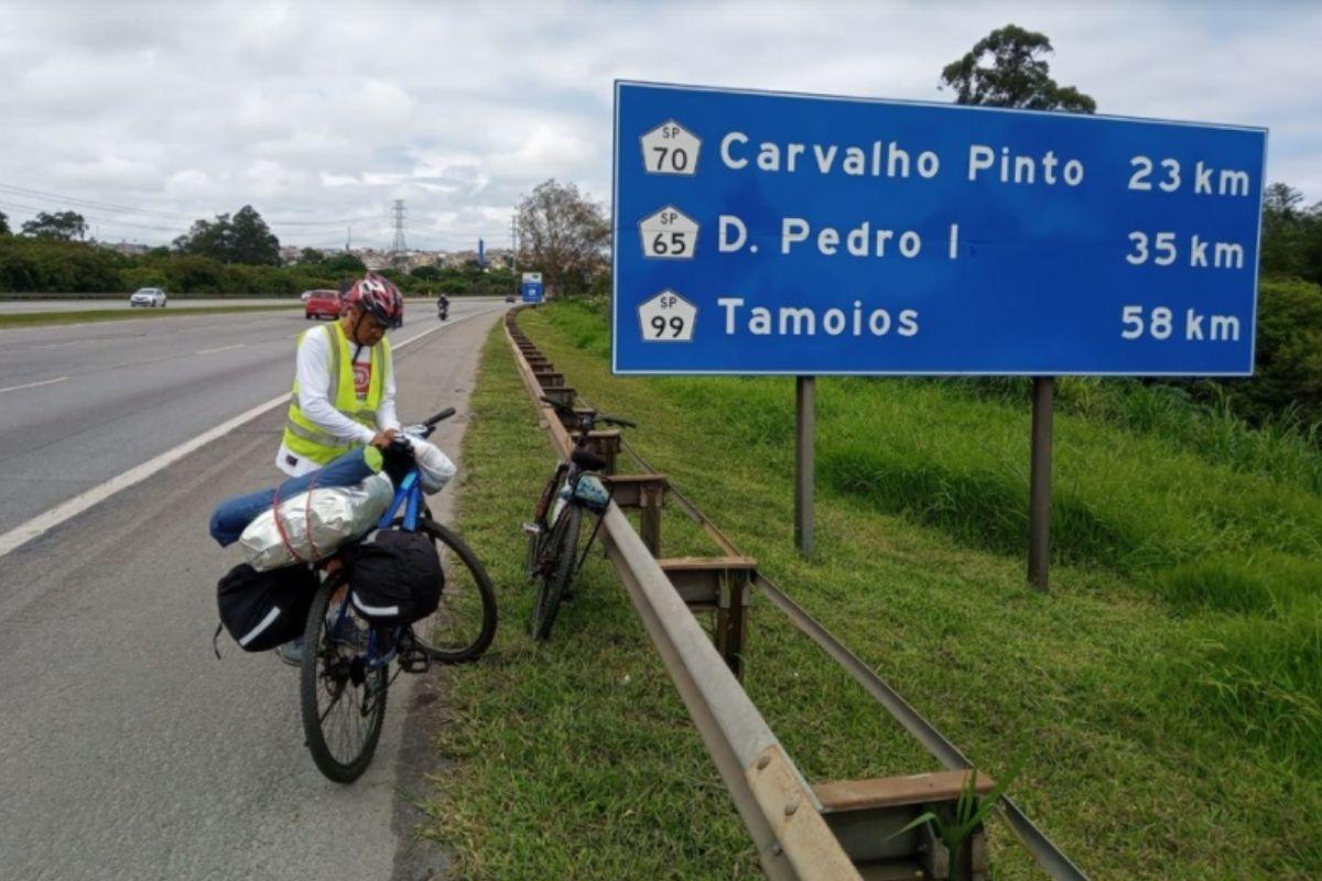Pedro tirou 6 horas do dia para pedalando 15km/h para que chegasse à tempo no local. Ele já possui o costume de pedalar por grandes trajetos ao decorrer da vida.