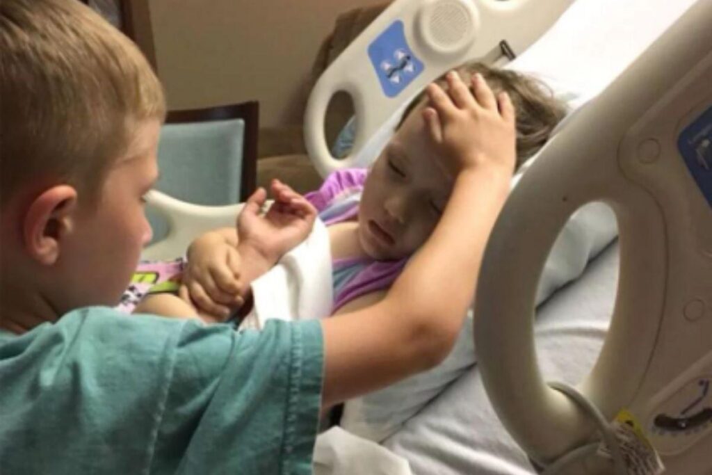 Poucas horas antes de Adalynn Sooter, de 4 anos, morrer devido a um tumor no cérebro em um hospital de Arkansas, nos Estados Unidos, o irmão mais velho estava ao lado da cama acariciando os cabelos nos momentos finais da garota.