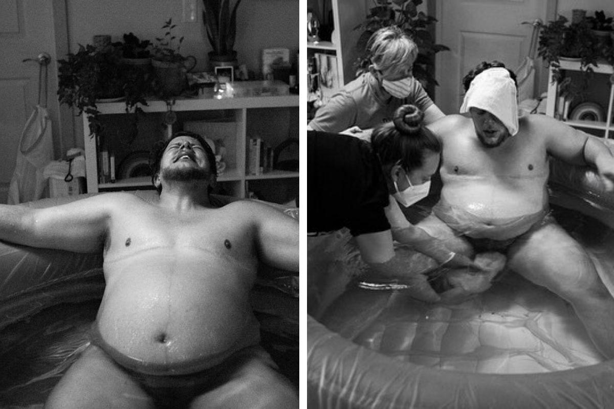 Danny Wakefield durante parto da primeira filha (Foto: Reprodução / Instagram @dannythetransdad)
