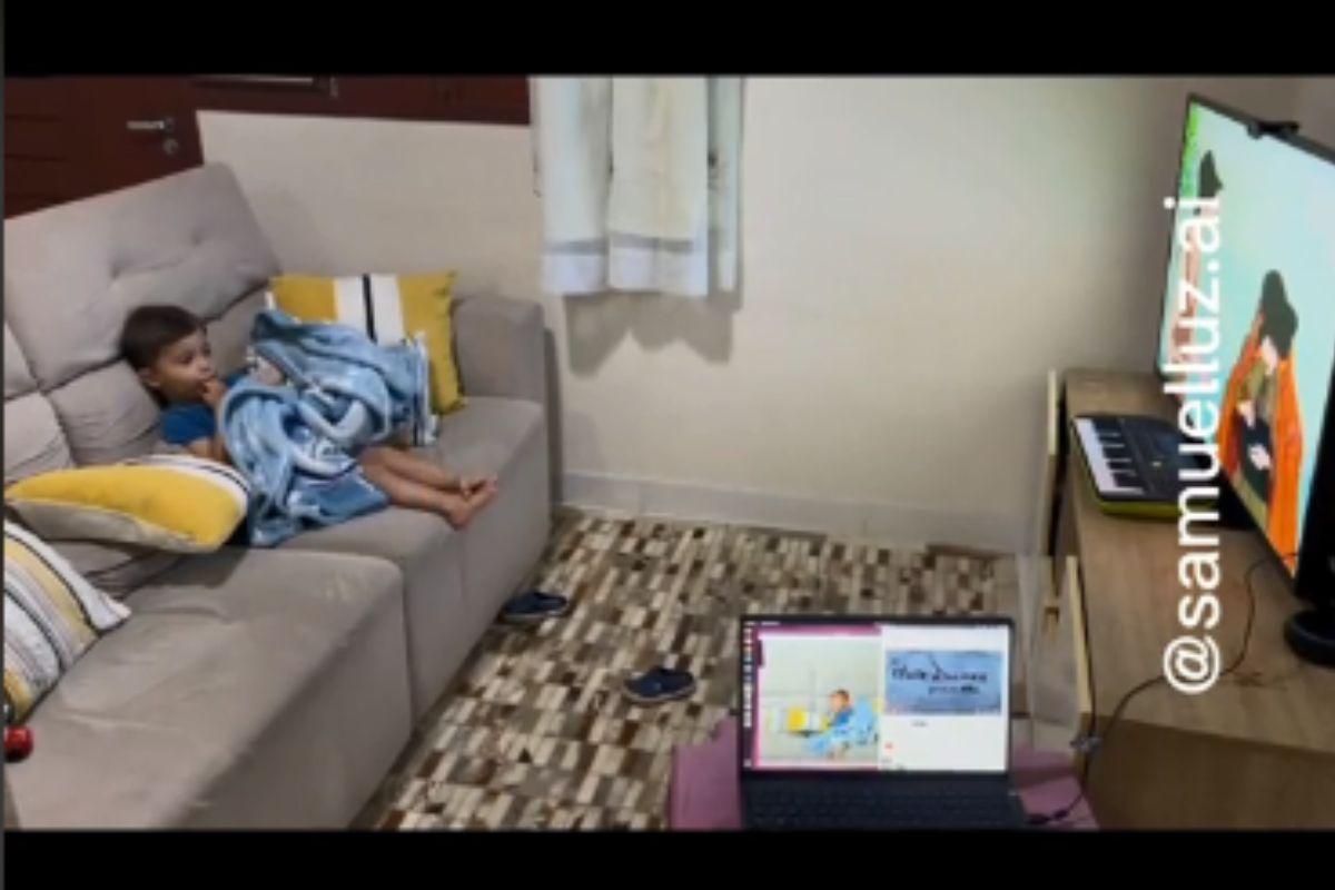 Ele continua contando sobre o objetivo dele com a iniciativa. “Agora, ele vai entender que para poder assistir o desenho, ele não vai poder chupar o dedo. Com isso, eu estou utilizando a recompensa de assistir o vídeo como um motivador para que ele pare de chupar o dedo”.