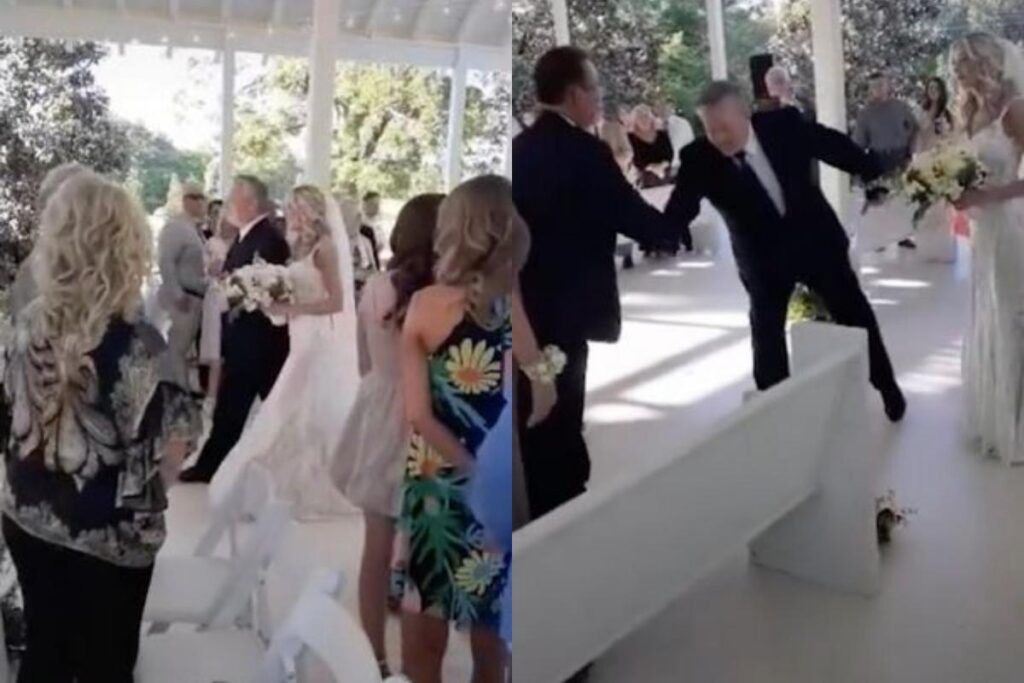 Entretanto, ao invés de ir direto para o noivo, o pai decidiu tomar um rumo completamente diferente, ao parar na frente da mãe e do padrasto da noiva e convidar o outro homem para se juntar a ele na entrega da filha ao pretendente. Os dois se juntam então e oferecem os braços à noiva, fazendo com que os três familiares continuassem à caminho do altar para encontrar o noivo.