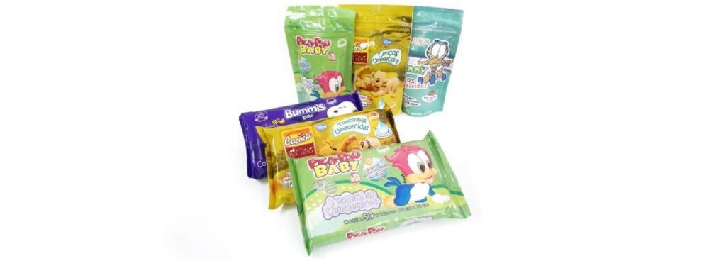 Lenços e toalhinhas umedecidas (diversas linhas); Fraldas Capricho; preço sob consulta.