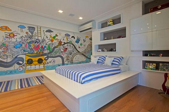 “Papéis de paredes, revestimentos de tecidos e adesivos, por exemplo, dão mais vida para o ambiente e podem ser facilmente trocados”, confirma a arquiteta e designer de interiores Patricia Penna, mãe de Bruno e Nathalie.