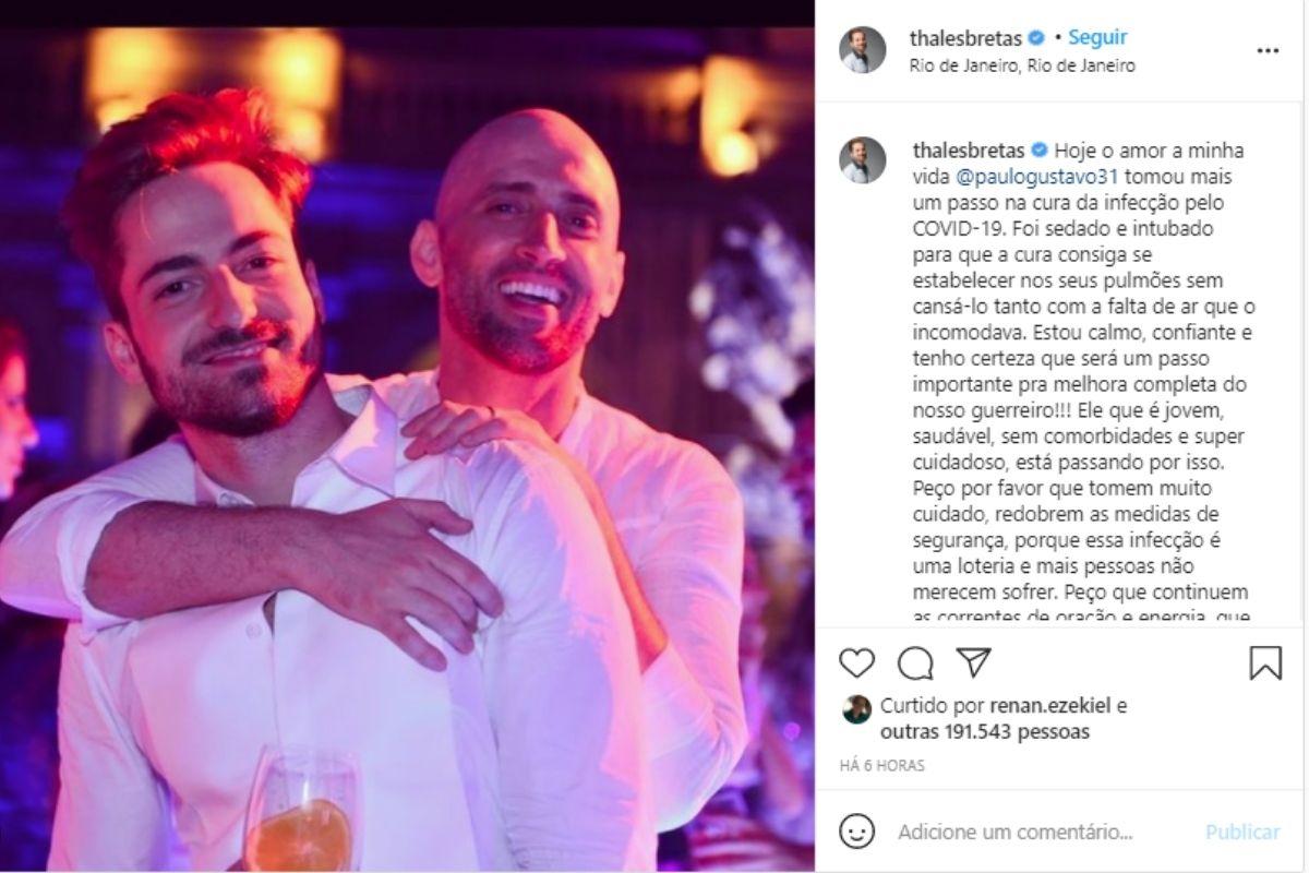 Thales Bretas mostra confiança após Paulo Gustavo ser intubado por Covid (Foto: Reprodução / Instagram @thalesbretas)