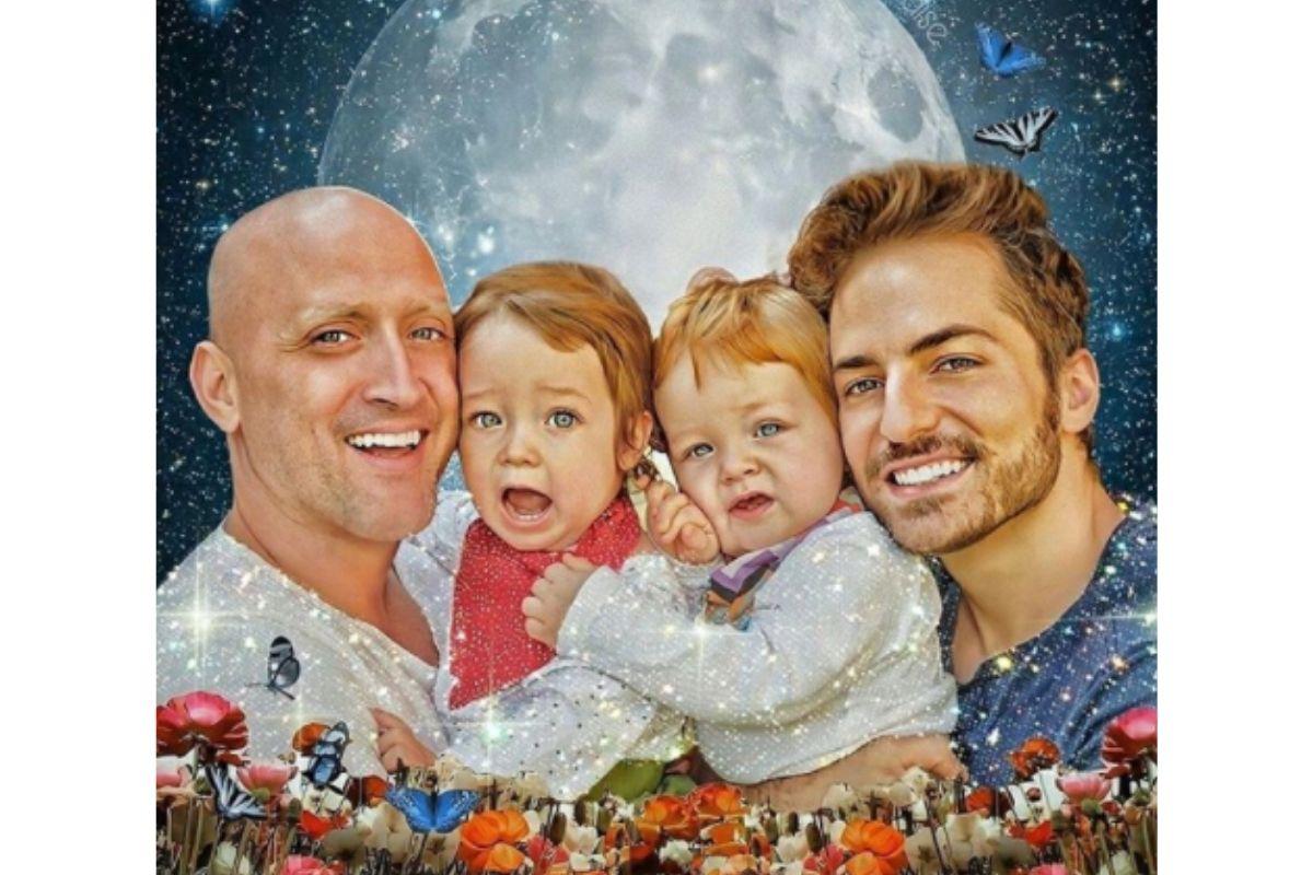 Paulo Gustavo compartilhou com os fãs nesta sexta-feira, 11 de setembro, uma arte que recebeu da artista Mariana Maise. Na imagem, o humorista aparece ao lado dos filhos, os gêmeos Gael e Romeo, de 1 ano, e do marido, o dermatologista Thales Bretas.