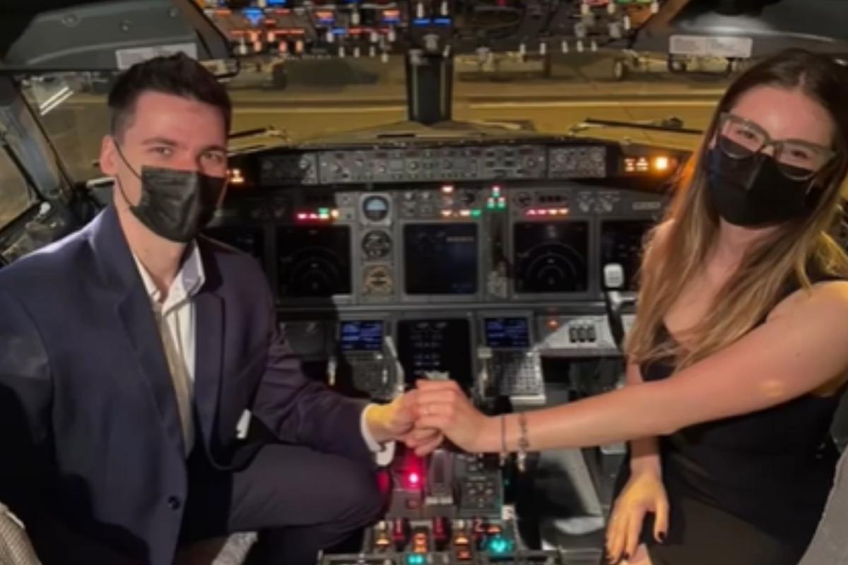 Romance nas alturas! Na última sexta-feira, dia 15 de outubro, um simples voo comercial se transformou em um pedido romântico de casamento, por um casal que se encontra a cada 15 dias.