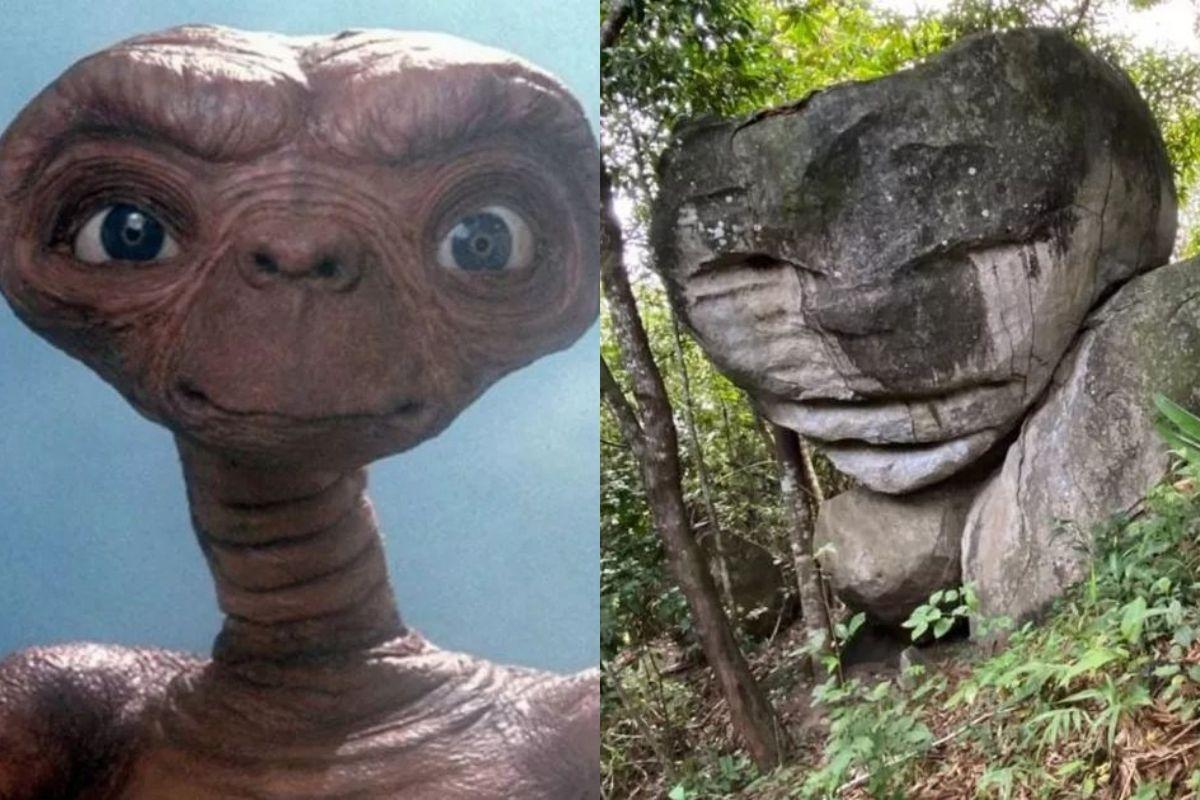 Quem nunca viu o filme “E.T. – O extraterrestre“, de 1982 criado por Steven Spielberg, ou pelo menos uma foto do bicho? Pois agora existe uma atração turística no município de São Luiz, em Roraima, de uma pedra com o formato da cabeça do ET. A pedra fica no quintal da chácara das Flores, propriedade de Marino Barreto Caldas, de 58 anos, diretor de Meio Ambiente da cidade de São Luiz, na região Sul.
